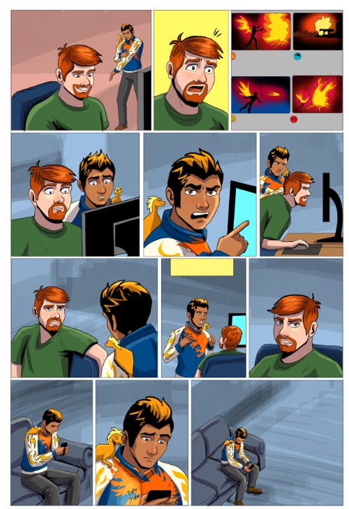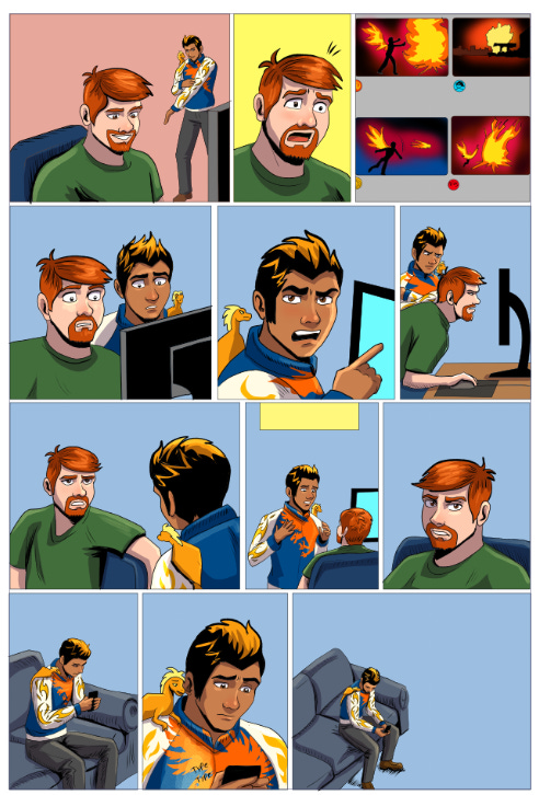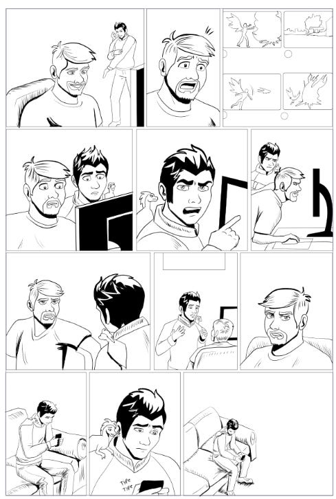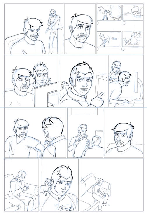 My workflow for drawing, inking, and coloring a comic page, complete with dirty shortcuts