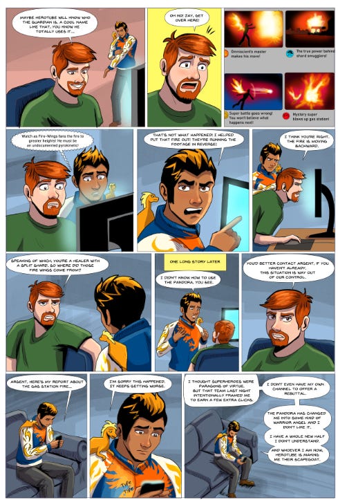 I now had to spend a layer just to make the one HeroTube panel in the top right look good. It had to have its own background and painting, so I worked on that.